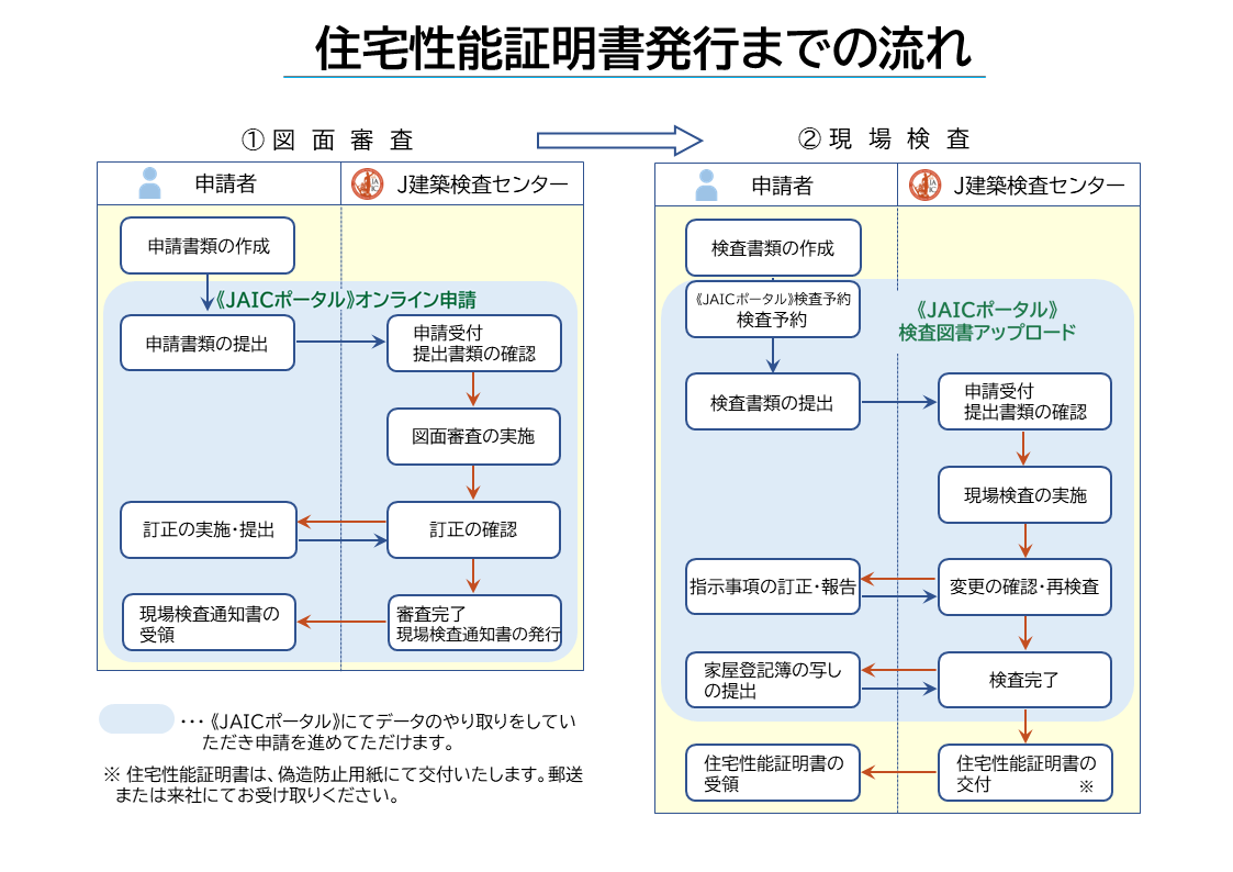 ①竣工時 - 最終図書を《JAICポータル》オンライン申請にて提出していただく場合、「通知書・証明書」は紙にて交付いたしますが、「添付図書」はデータのみで紙では交付いたしません。
